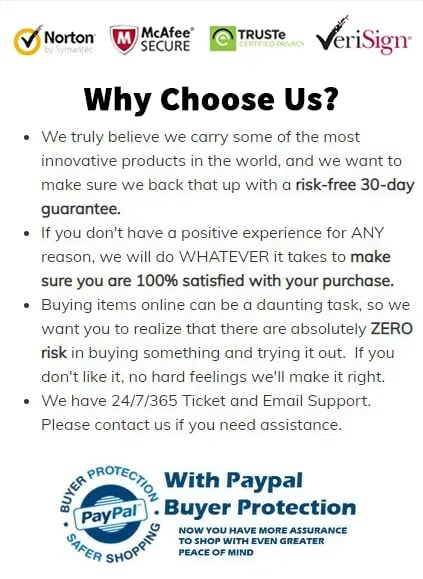 Dear customer, buy any product here and try it out in the comfort of your home for 30 days. If for some reason you are not completely satisfied, please return the product within 30 days!