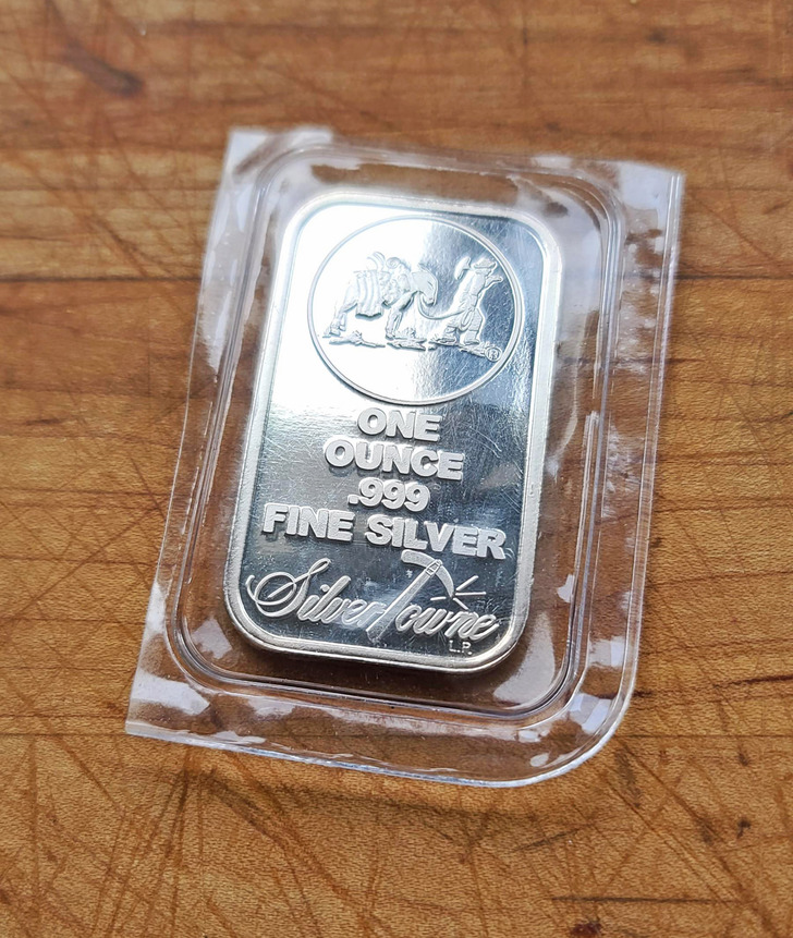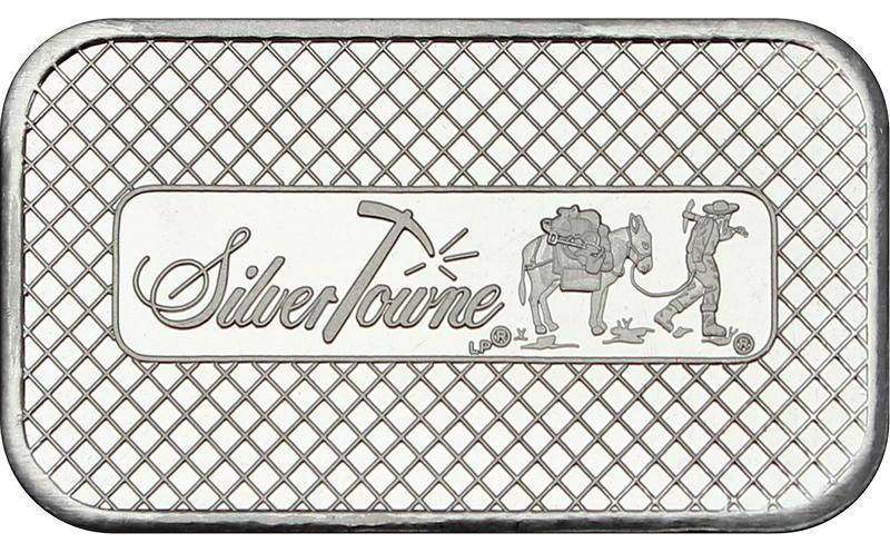 The Trademark image of the Prospector and Donkey is why some collectors know these silver ingots as "SilverTowne Donkey Bars" or also as the "SilverTowne Logo Bars".